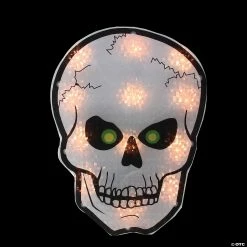Northlight 12″ Silver and Black Holographic Lighted Skull Halloween Window Silhouette Decoration