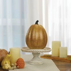 Northlight Orange and Gold Diamond Patterned Halloween Pumpkin Tabletop Decoration