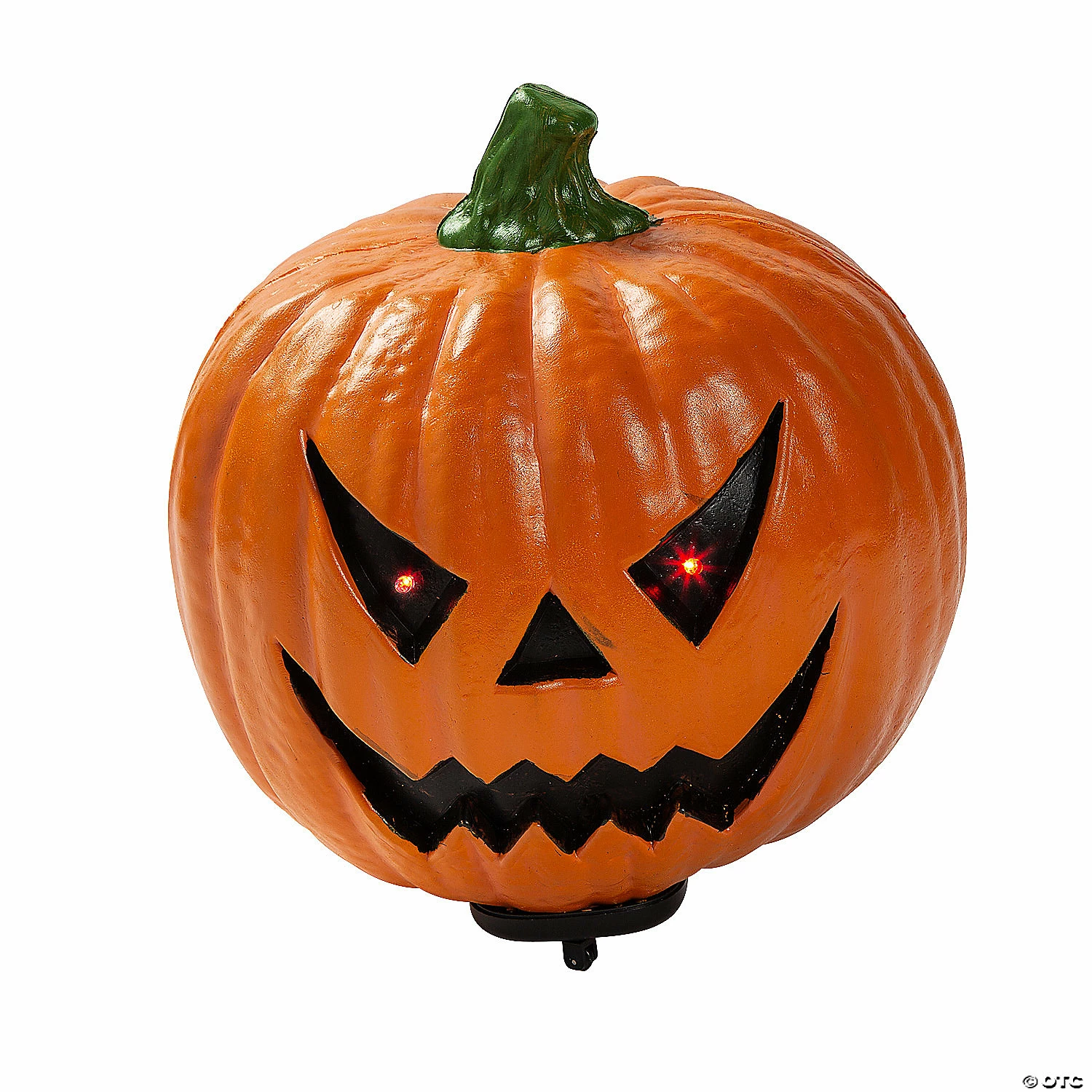 With eyes that light up and a creepy grin, this jack-o-lantern is the perfect Halloween party decoration! Activated by sound, this spooky fellow starts moving when it detects a sound, startling everyone nearby. The light-up eyes shine red and add to the overall scary look of this animated jack-o-lantern. Plastic. 10″ Requires 3 “AA” batteries, not included. Noise-activated.