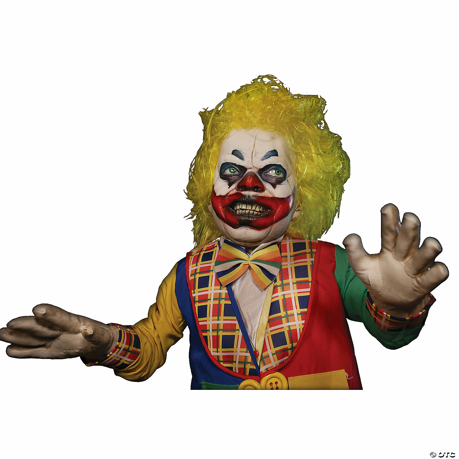 Whacko Clown Animated Prop. This demented mini clown is a little tipsy! He rocks side to side, trying to keep his balance as he clowns around. This animated clown prop features: All electric ANIMATRONIC movement. Stands approximately 4 feet tall. Made of foam filled latex with armature and is hand painted. Costuming may vary. Includes Soundtrack on CD to play in your CD player. Requires AC Power to operate.Special Shipping Information: This item ships separately from other items in your order. This item cannot ship to a P.O. Box. This item may be subject to additional processing days.ITEM IS NOT ELIGIBLE FOR EXPEDITED SHIPPING