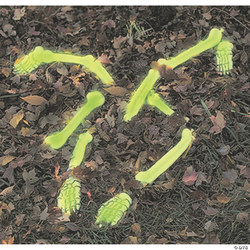 Plastic leg and arm bones with a glow in the dark finish. Bones measure 6 inches to 12 inches long.