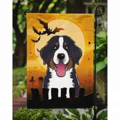 Halloween Bernese Mountain Dog Flag Garden Size. Flag Garden Size featuring breed specific Bernese Mountain Dog artwork. Celebrate Halloween with this Halloween Garden Flag. Artwork for your garden, patio or yard. This is a thick Double sided garden flag made from two pieces of polyester fabric. This 2 ply garden size flag is water resistant and weather proof. Words on the flag can be read correctly on both sides of the garden flag. Heavier than most other garden flags available. This flag will hold up in wind, rain and snow. Make your personal statement in your outdoor decor with this colorful quality garden flag. The flag measures approximately 11 1/4 inches x 15 1/2 inches. The flag has a 1 1/2 inch sleeve sewn in to allow you to attach the flag to any standard garden flag stand or garden size porch hanger. The garden stand is sold seperately. This Garden Flag is from Caroline’s Treasures Dogs category of products.