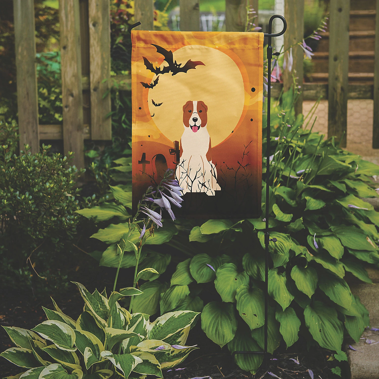 Halloween Central Asian Shepherd Dog Flag Garden Size. Flag Garden Size featuring breed specific Central Asian Shepherd artwork. Celebrate Halloween with this Halloween Garden Flag. Artwork for your garden, patio or yard. This is a thick Double sided garden flag made from two pieces of polyester fabric. This 2 ply garden size flag is water resistant and weather proof. Words on the flag can be read correctly on both sides of the garden flag. Heavier than most other garden flags available. This flag will hold up in wind, rain and snow. Make your personal statement in your outdoor decor with this colorful quality garden flag. The flag measures approximately 11 1/4 inches x 15 1/2 inches. The flag has a 1 1/2 inch sleeve sewn in to allow you to attach the flag to any standard garden flag stand or garden size porch hanger. The garden stand is sold seperately. This Garden Flag is from Caroline’s Treasures Dogs category of products.