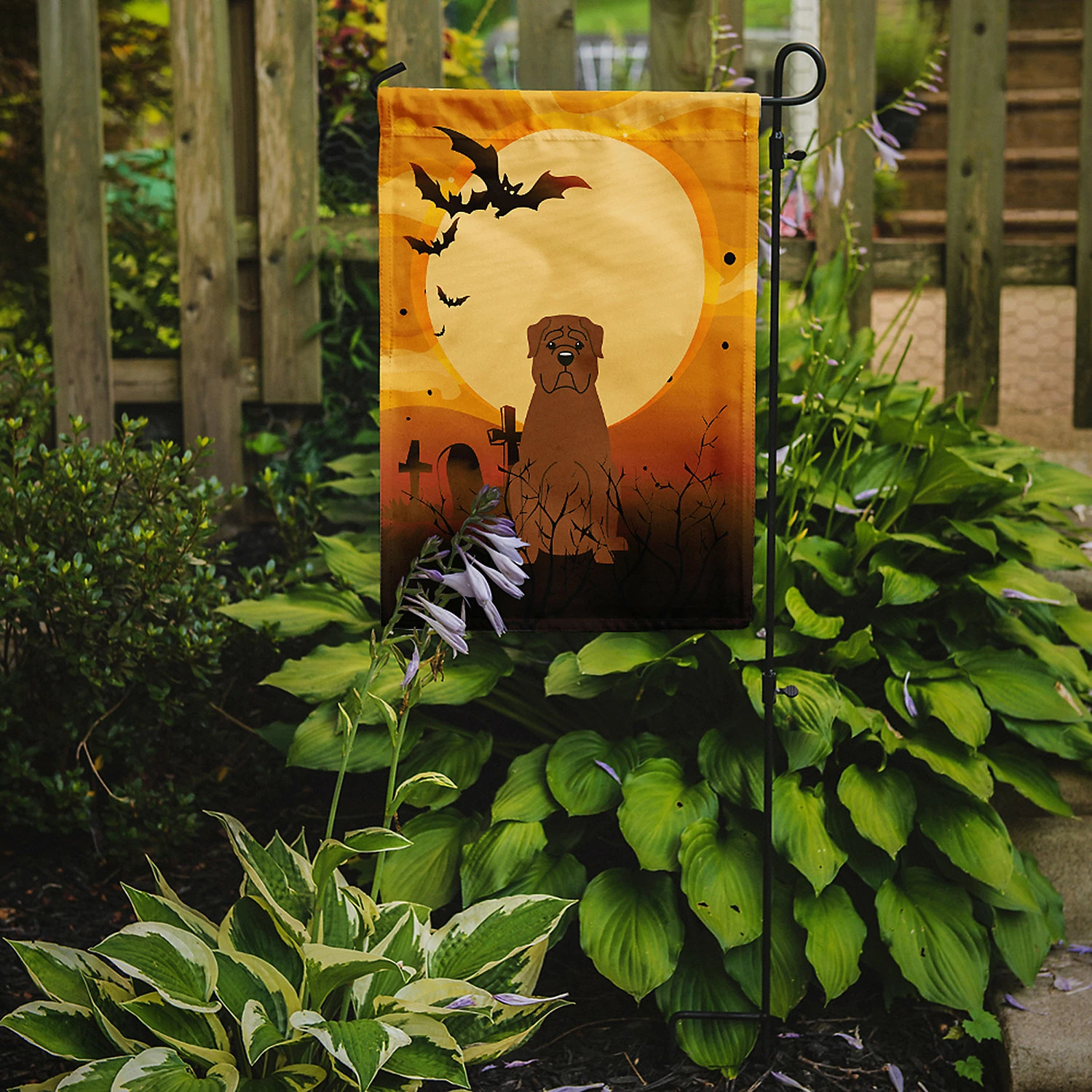Halloween Dogue de Bourdeaux Flag Garden Size. Flag Garden Size featuring breed specific Dogue de Bourdeaux artwork. Celebrate Halloween with this Halloween Garden Flag. Artwork for your garden, patio or yard. This is a thick Double sided garden flag made from two pieces of polyester fabric. This 2 ply garden size flag is water resistant and weather proof. Words on the flag can be read correctly on both sides of the garden flag. Heavier than most other garden flags available. This flag will hold up in wind, rain and snow. Make your personal statement in your outdoor decor with this colorful quality garden flag. The flag measures approximately 11 1/4 inches x 15 1/2 inches. The flag has a 1 1/2 inch sleeve sewn in to allow you to attach the flag to any standard garden flag stand or garden size porch hanger. The garden stand is sold seperately. This Garden Flag is from Caroline’s Treasures Dogs category of products.