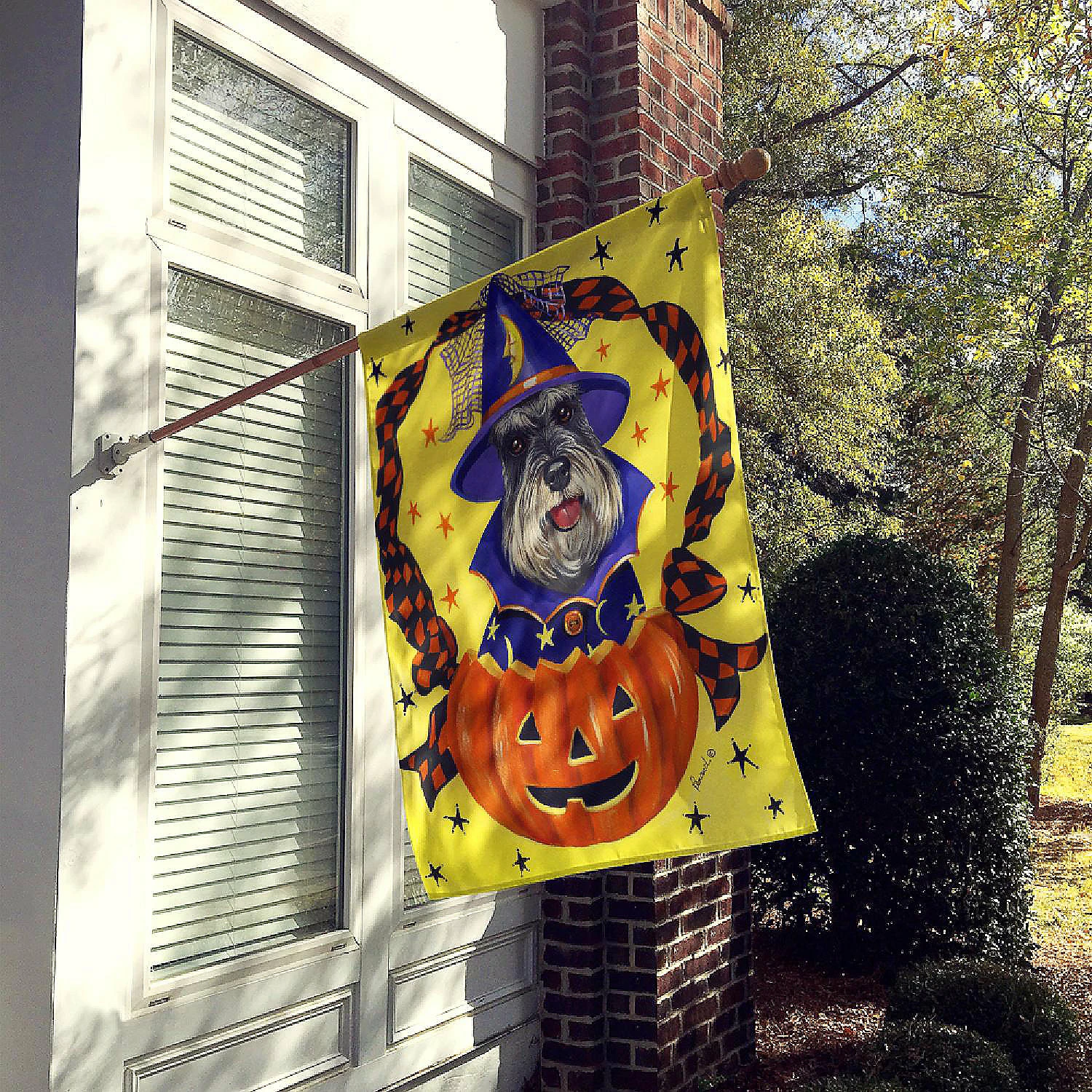 Schnauzer Halloween Flag Canvas House Size. Flag Canvas House Size featuring breed specific Schnauzer artwork. Celebrate Halloween with this Halloween Large Flag. Heavy Duty Polyester House Size Decorative Sleeve Pole Flag. Each flag measures approximately 28 x 40 inches. This flag is sewn and made one at a time and may vary slightly in size. This is a sleeve pole flag that will fit a standard decorative flag pole. The flag pole and bracket are not included and should be purchased seperately. The flag is printed on both sides of the fabric with one side mirroring the other side. Each flag is printed in full color and they dyes are heat set for durability. This Large Flag is from Caroline’s Treasures Dogs category of products.
