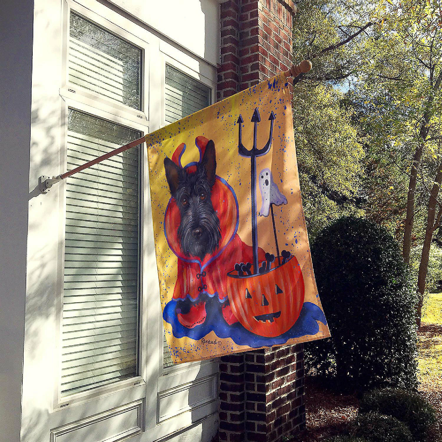 Scottie Boo Hoo Halloween Flag Canvas House Size. Flag Canvas House Size featuring breed specific Scottish Terrier artwork. Celebrate Halloween with this Halloween Large Flag. Heavy Duty Polyester House Size Decorative Sleeve Pole Flag. Each flag measures approximately 28 x 40 inches. This flag is sewn and made one at a time and may vary slightly in size. This is a sleeve pole flag that will fit a standard decorative flag pole. The flag pole and bracket are not included and should be purchased seperately. The flag is printed on both sides of the fabric with one side mirroring the other side. Each flag is printed in full color and they dyes are heat set for durability. This Large Flag is from Caroline’s Treasures Dogs category of products.