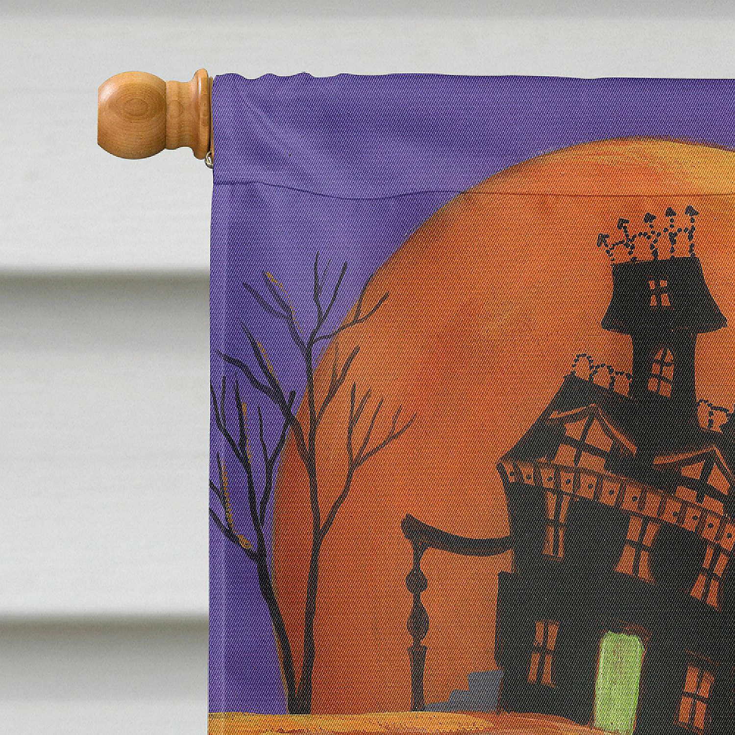 Scottie Halloween Haunted House Flag Canvas House Size. Flag Canvas House Size featuring breed specific Scottish Terrier artwork. Celebrate Halloween with this Halloween Large Flag. Heavy Duty Polyester House Size Decorative Sleeve Pole Flag. Each flag measures approximately 28 x 40 inches. This flag is sewn and made one at a time and may vary slightly in size. This is a sleeve pole flag that will fit a standard decorative flag pole. The flag pole and bracket are not included and should be purchased seperately. The flag is printed on both sides of the fabric with one side mirroring the other side. Each flag is printed in full color and they dyes are heat set for durability. This Large Flag is from Caroline’s Treasures Dogs category of products.