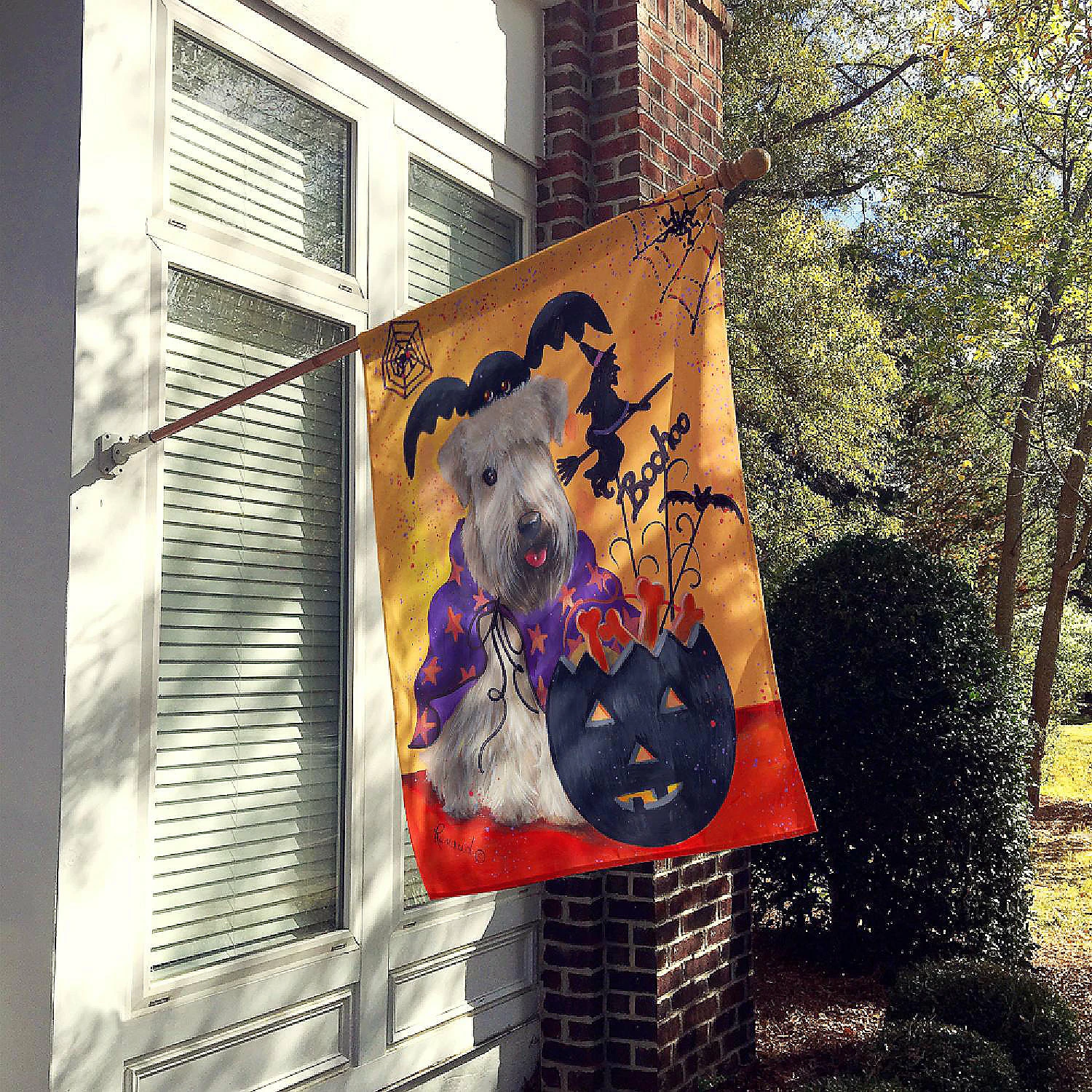Wheaten Terrier Halloween Flag Canvas House Size. Flag Canvas House Size featuring breed specific Wheaten Terrier artwork. Celebrate Halloween with this Halloween Large Flag. Heavy Duty Polyester House Size Decorative Sleeve Pole Flag. Each flag measures approximately 28 x 40 inches. This flag is sewn and made one at a time and may vary slightly in size. This is a sleeve pole flag that will fit a standard decorative flag pole. The flag pole and bracket are not included and should be purchased seperately. The flag is printed on both sides of the fabric with one side mirroring the other side. Each flag is printed in full color and they dyes are heat set for durability. This Large Flag is from Caroline’s Treasures Dogs category of products.