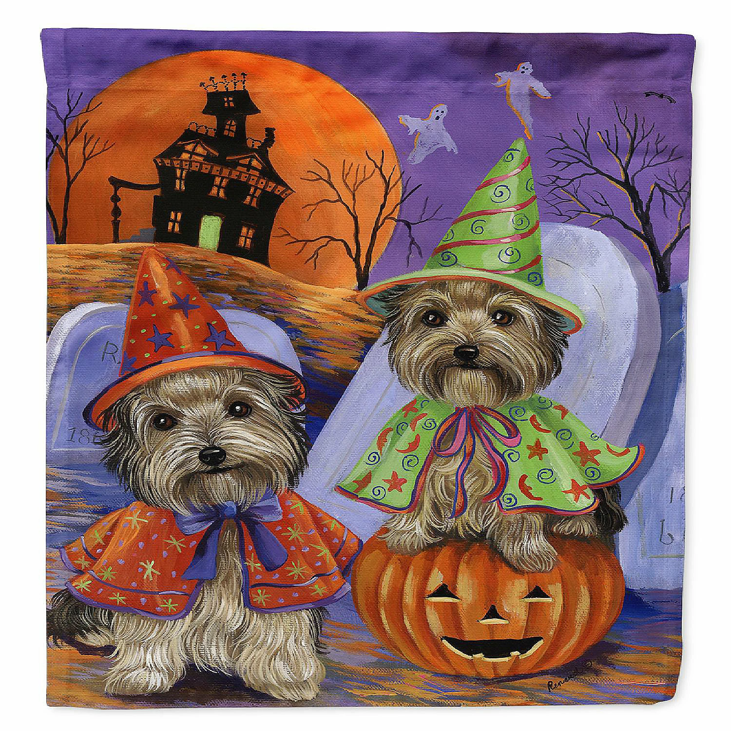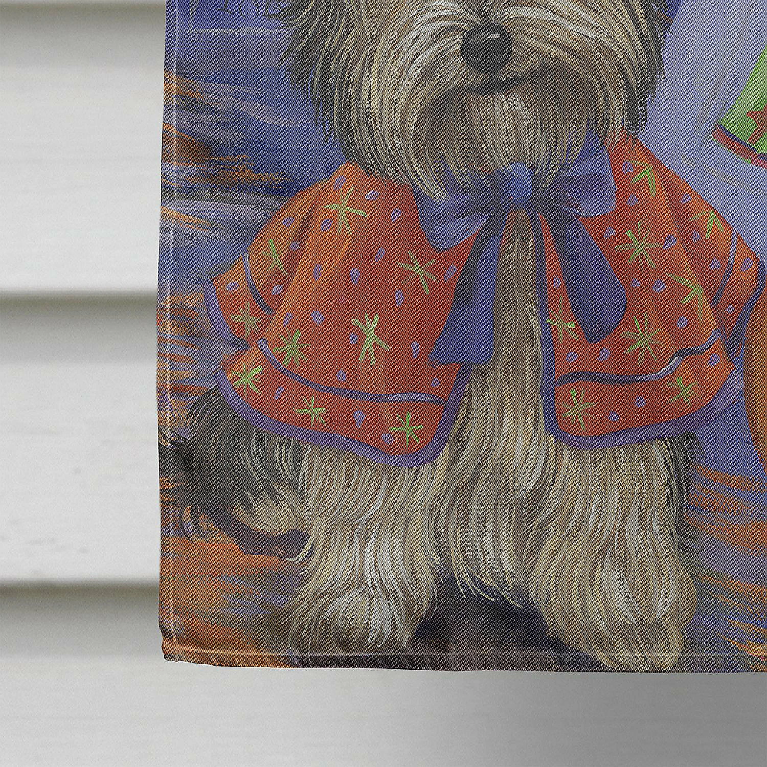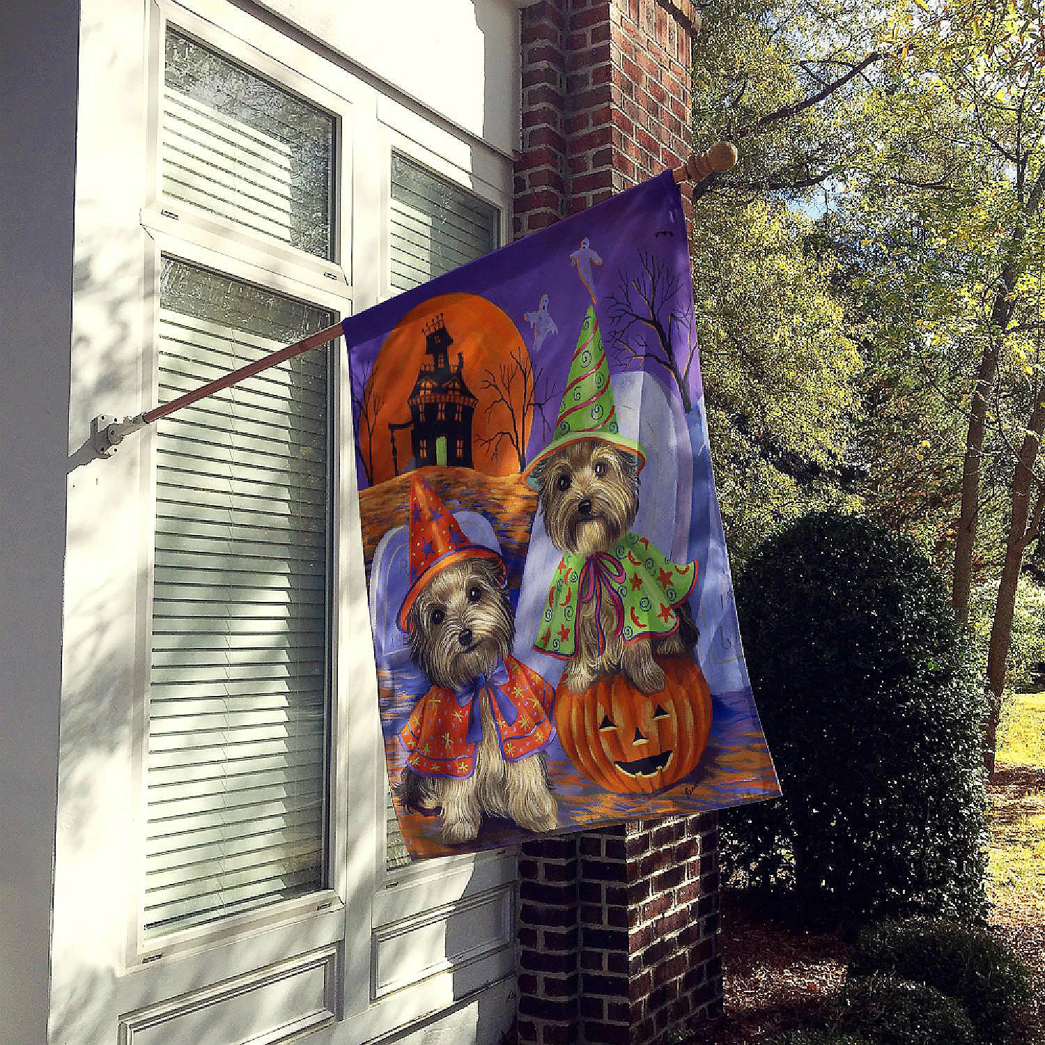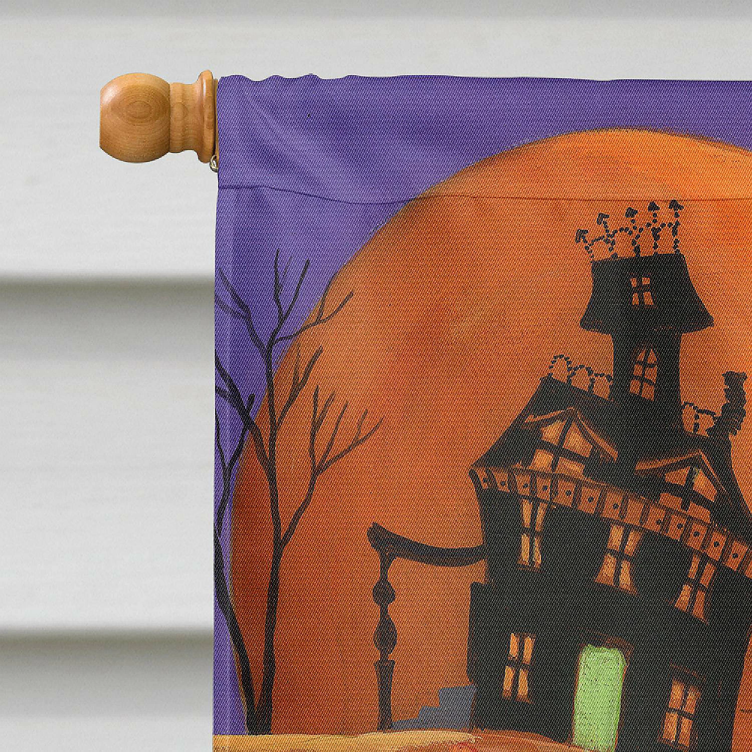 Yorkie Halloween Haunted House Flag Canvas House Size. Flag Canvas House Size featuring breed specific Yorkshire Terrier artwork. Celebrate Halloween with this Halloween Large Flag. Heavy Duty Polyester House Size Decorative Sleeve Pole Flag. Each flag measures approximately 28 x 40 inches. This flag is sewn and made one at a time and may vary slightly in size. This is a sleeve pole flag that will fit a standard decorative flag pole. The flag pole and bracket are not included and should be purchased seperately. The flag is printed on both sides of the fabric with one side mirroring the other side. Each flag is printed in full color and they dyes are heat set for durability. This Large Flag is from Caroline’s Treasures Dogs category of products.