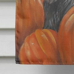 Scottish Terrier Scottie Pumpkins Flag Canvas House Size. Flag Canvas House Size featuring breed specific Scottish Terrier artwork. Celebrate Thanksgiving with this Thanksgiving Large Flag. Heavy Duty Polyester House Size Decorative Sleeve Pole Flag. Each flag measures approximately 28 x 40 inches. This flag is sewn and made one at a time and may vary slightly in size. This is a sleeve pole flag that will fit a standard decorative flag pole. The flag pole and bracket are not included and should be purchased seperately. The flag is printed on both sides of the fabric with one side mirroring the other side. Each flag is printed in full color and they dyes are heat set for durability. This Large Flag is from Caroline’s Treasures Dogs category of products.