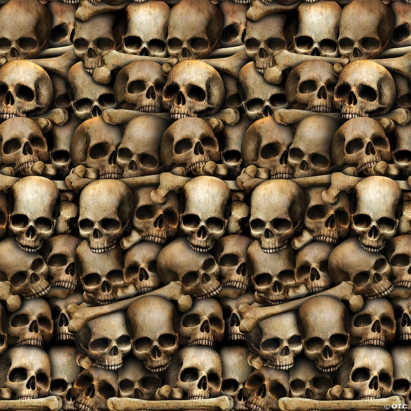 Build your own subterranean pathway of horror to accent your dungeon. Includes: photo print of a spooky scene with piles of skulls that seem to be watching. Made of PEVA. 4ft x 30ft. Attach to walls as desired. Indoor/Outdoor use.Special Shipping Information: This item ships separately from other items in your order. This item cannot ship to a P.O. Box. This item may be subject to additional processing days.ITEM IS NOT ELIGIBLE FOR EXPEDITED SHIPPING