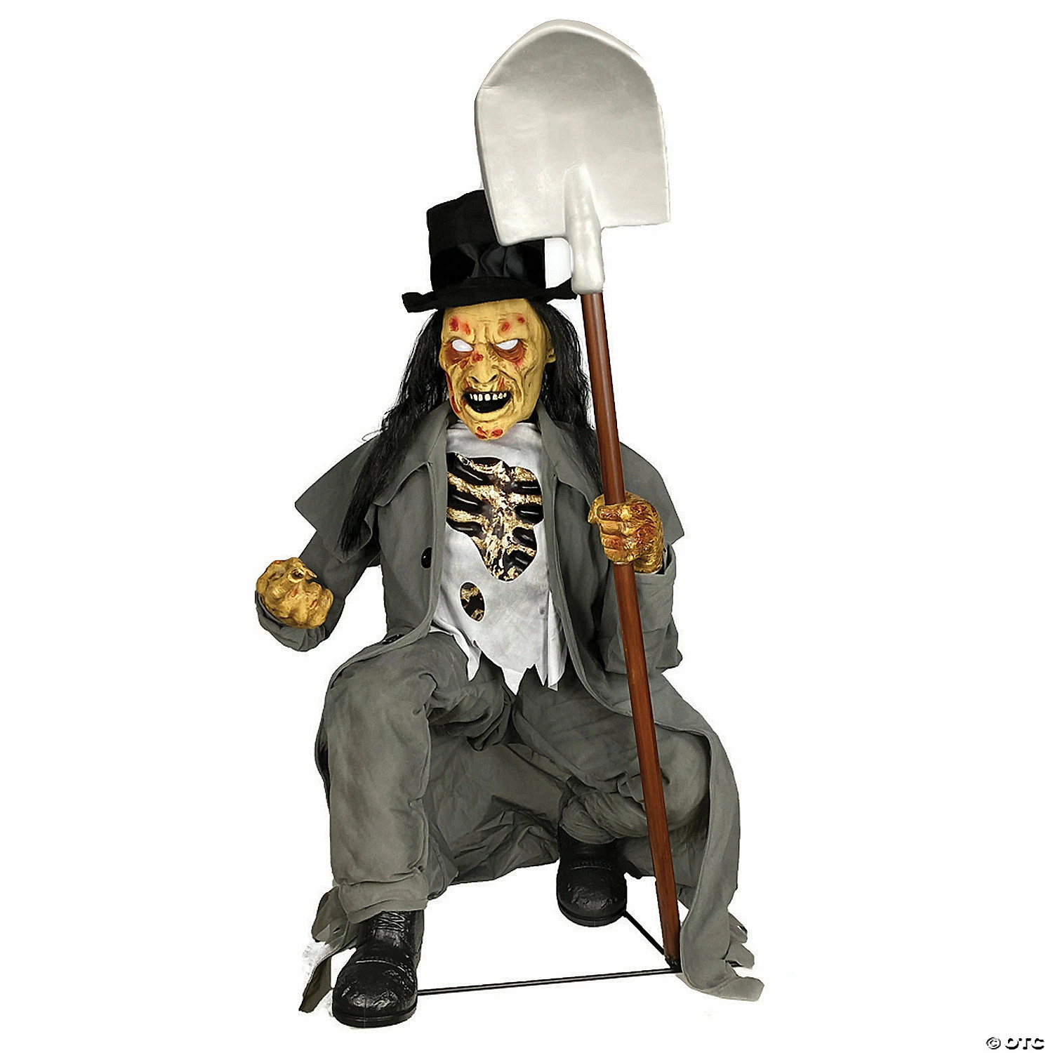 This ghoulish creature will leave a haunting impression on your party guests. This Crouching Grave Digger will be a great addition to your haunted cemetery scene. The Crouching Grave Digger prop features a ghoulish figure with light up eyes, long stringy hair, exposed skeleton chest, grey tattered clothing and shovel prop.Special Shipping Information: This item ships separately from other items in your order. This item cannot ship to a P.O. Box. This item may be subject to additional processing days.ITEM IS NOT ELIGIBLE FOR EXPEDITED SHIPPING