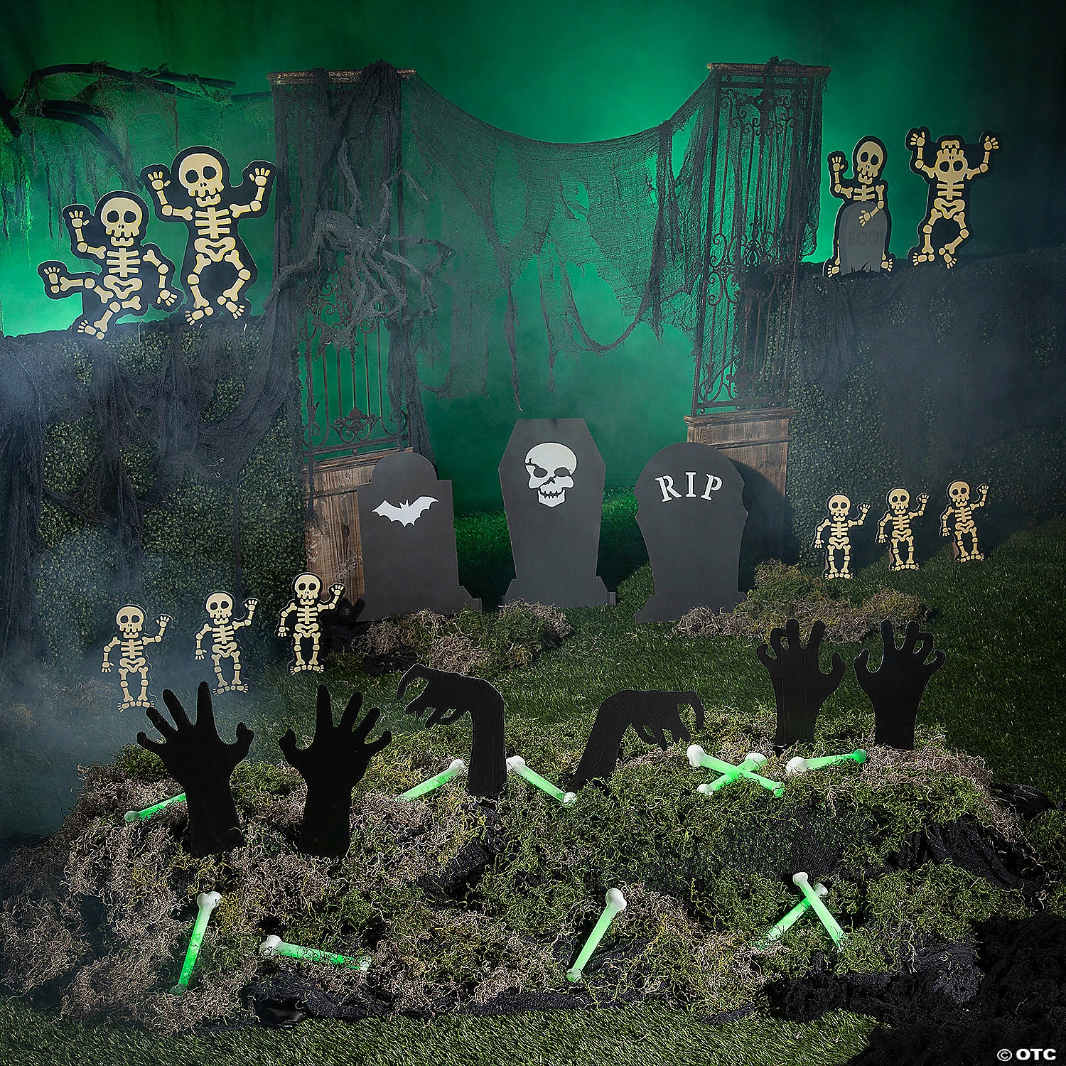 These hair-raising yard decorations are sure to thrill the whole neighborhood! Line your driveway, sidewalks and front porch with this yard décor to delight trick-or-treaters and other passersby. Your house will be the talk of the town, no bones about it! (31 pcs. per unit) Assortment may vary.Includes: • 12 Plastic Glow-in-the-Dark Bones (2″ x 9″ Simply snap and shake glow sticks to activate glow. Simple assembly required.)• 3 Corrugated Plastic Halloween Headstone Yard Signs (Each 20 1/2″ – 26″ headstone is on a pair of 22″ metal stakes. Simple assembly required.)• 6 Corrugated Plastic Halloween Skeleton Sidewalk Signs (Single-sided. Includes metal stakes. 8 1/2″ x 12 3/4″ Simple assembly required.)• 4 Corrugated Plastic Halloween Skeleton Yard Signs (Single-sided. Includes metal stakes. 13 1/4″ – 15 3/4″ x 17 3/4″ – 21 3/4″ Simple assembly required.)• 6 Corrugated Plastic Zombie Hand Yard Stakes (Includes metal stakes. 16″ Simple assembly required.)
