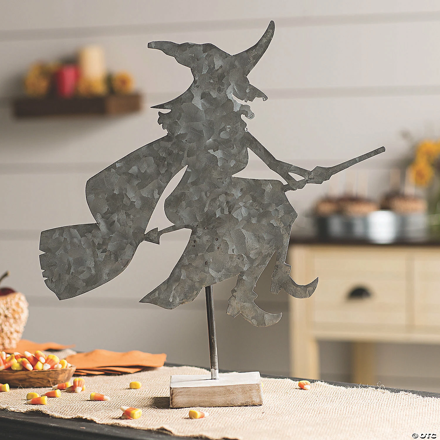 Add a magical touch to any room! A spellbinding addition to Halloween décor, this galvanized rustic accent shows a witch riding her broom into the sky. Whether set on the porch or atop a mantel, your coven is sure to love her at first sight. Think you need a potion to make Fright Night fabulous? Witch, please! Shop our full collection of fall décor, Halloween party supplies and more on this spooky site. Metal. 15” x 15 1/2”
