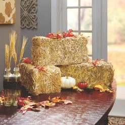 Use this smaller straw bale in your tabletop decorations this fall! Add this decorative bale to your craft supplies and DIY décor supplies and create a rustic, farmhouse look that’s perfect around Halloween and Thanksgiving. 13″ x 5″ x 6″