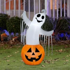 Greet your guests with this adorable Airblown® inflatable character. The ghost in a pumpkin is perfect for any Halloween scene. It self-inflates in seconds and comes with everything needed for easy outdoor setup. Display this adorable Halloween decoration as a standalone or combine it with other Airblown® Inflatables to create a custom scene.