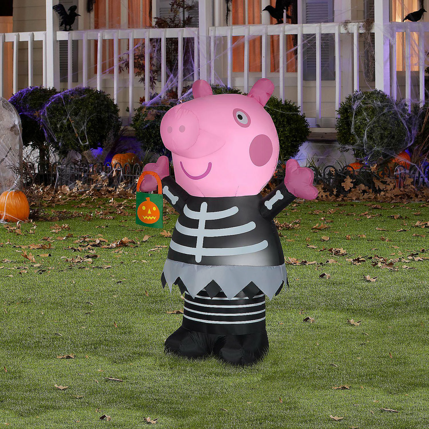 Peppa Pig fans will love this Halloween Airblown® Inflatable Peppa Pig. Decked out for trick or treating in a skeleton dress, our Peppa Pig inflatable makes an spooktacular addition to your Halloween decorations. Setup is super simple. Just plug it in, stake it down and watch the magic unfold. Display this Peppa Pig Halloween decoration as a standalone or combine it with other Airblown Inflatables to create a custom scene.