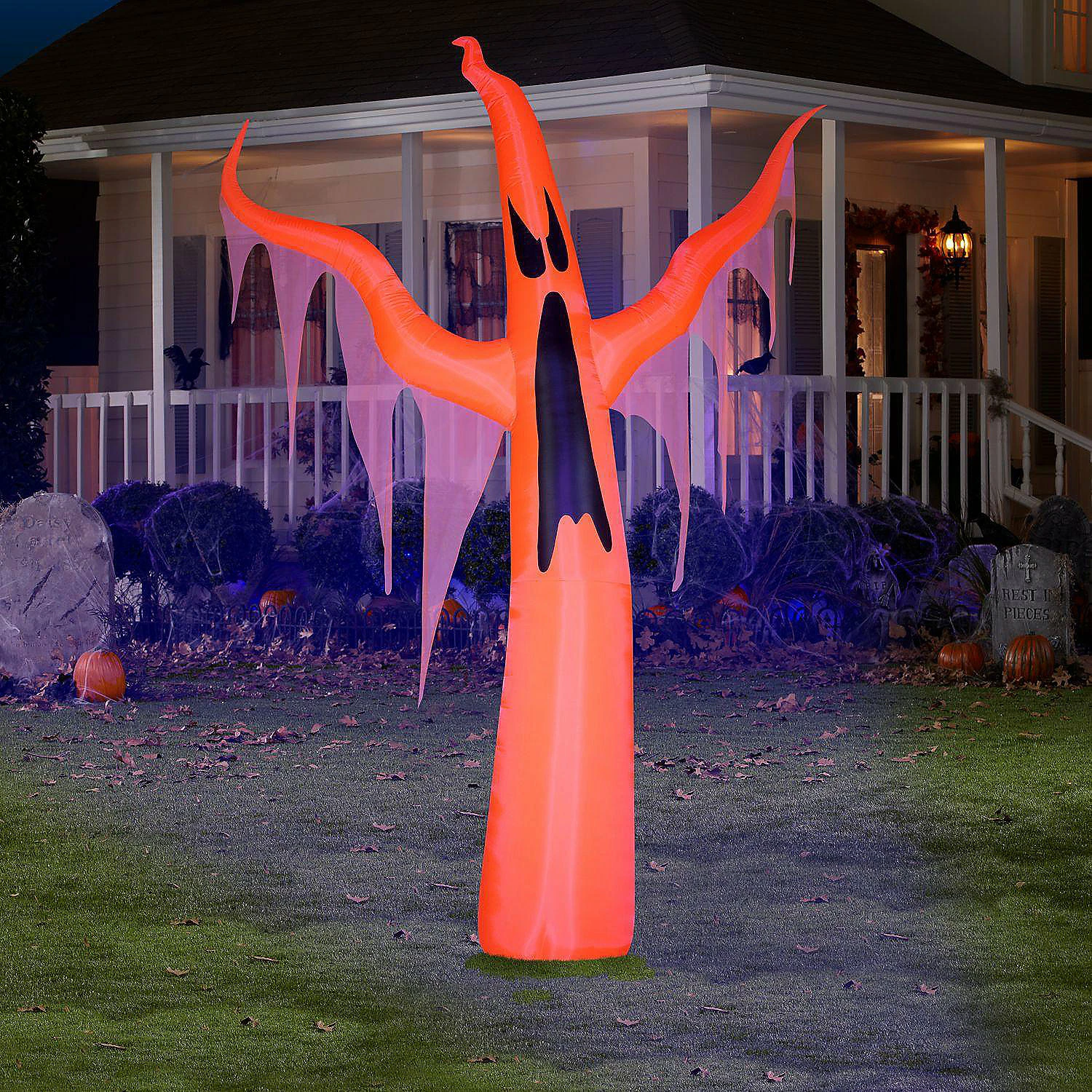 Frighten your guests with this creepy Airblown inflatable character. The giant orange ghost is a perfect addition to any Halloween scene. Setup is super simple. Just plug it in, stake it down and watch the magic unfold. Display this spooky Halloween decoration as a standalone or combine it with other Airblown® Inflatables to create a custom scene. Includes everything needed for easy outdoor setup.