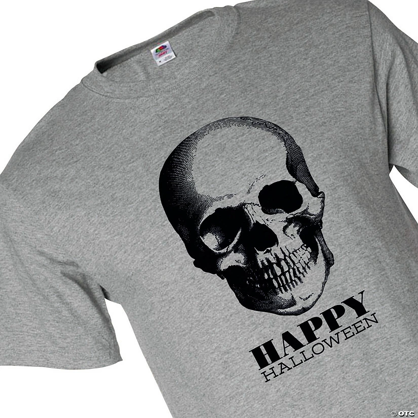 Go with classic imagery this Halloween: a creepily grinning skull! This comfortable Halloween tee will help get you in the Halloween spirit, whether you’re shopping for Halloween costumes with the little ones, decorating your yard with ghosts and spider webs, walking the kids around the neighborhood trick-or-treating or handing out candy at home. Just make sure you eat enough of the sweets; otherwise you’ll start looking like this guy, too! Add this shirt to your Halloween supplies. © OTC