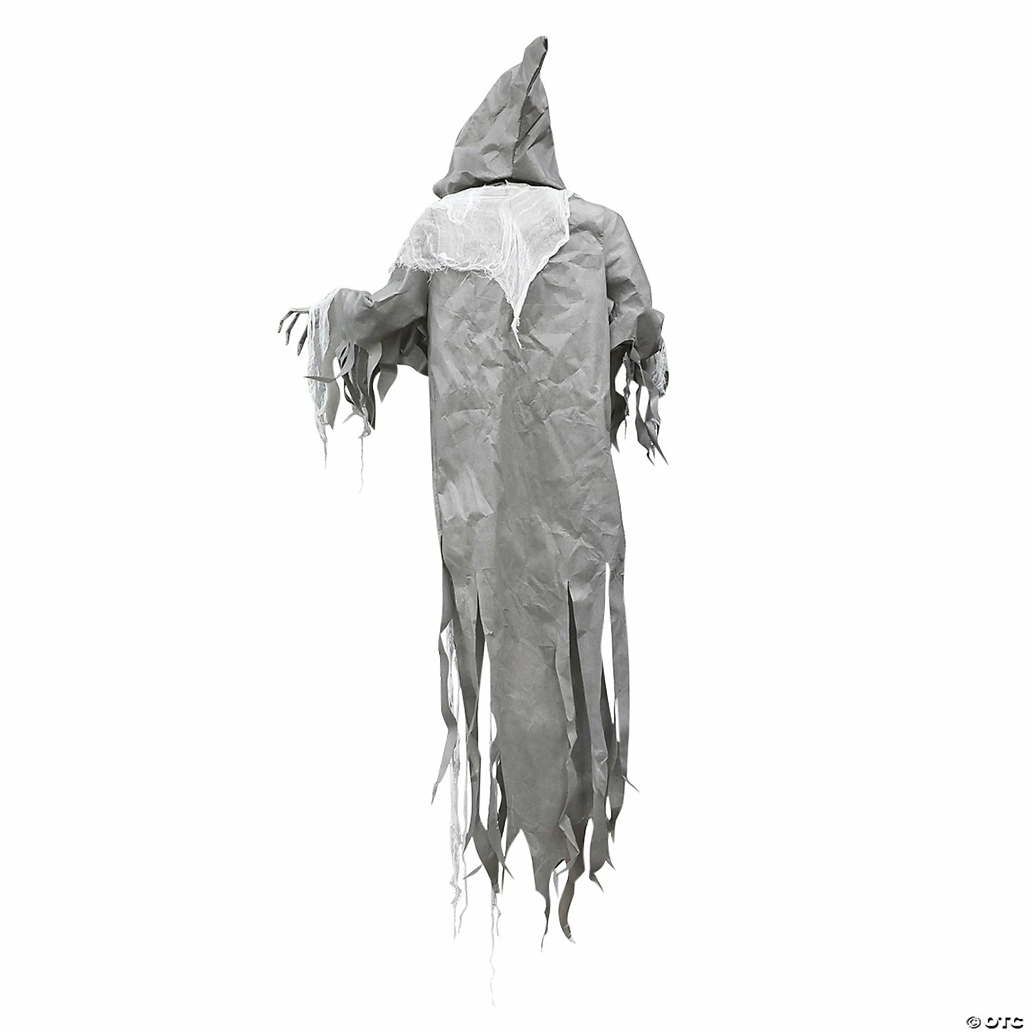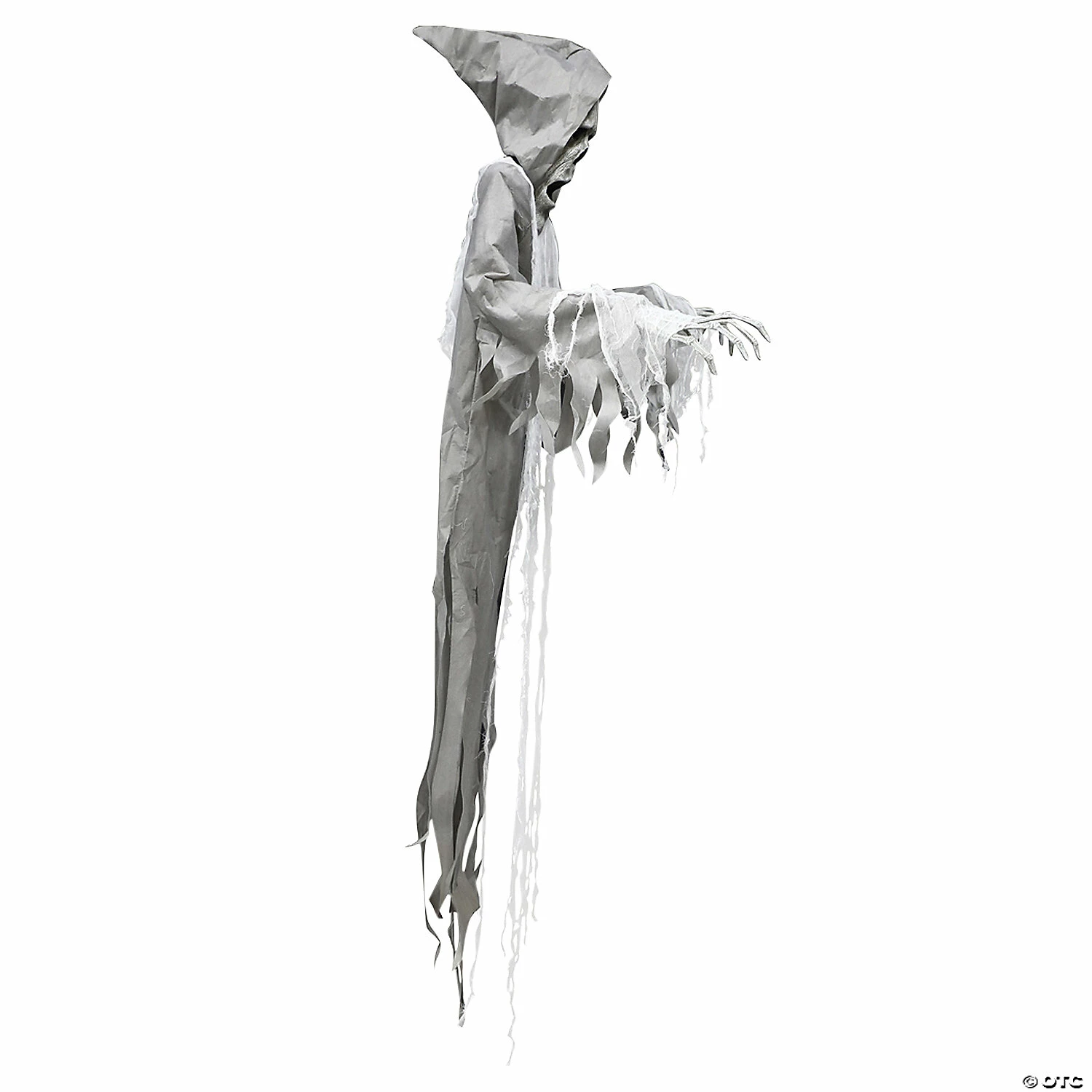 A horrific vision in white, 6-feet of this phantom ghost will haunt your halls. The eerie hallowed moans are motion-activated sound box with controllable volume. The life-size ghoul has blow-molded elongated head and long creepy hands with poseable arms, light-up eyes and draped in layers of white gauze.Special Shipping Information: This item ships separately from other items in your order. Imported.