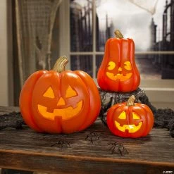 Get ready for the season with these cute Halloween decorations! A lovely addition to your seasonal home décor, they’re ideal for an end table, coffee table or any festive tabletop. Resin. (3 pcs. per set) Small, 3 1/2″; medium, 6 1/2″; large, 7″. Includes batteries.