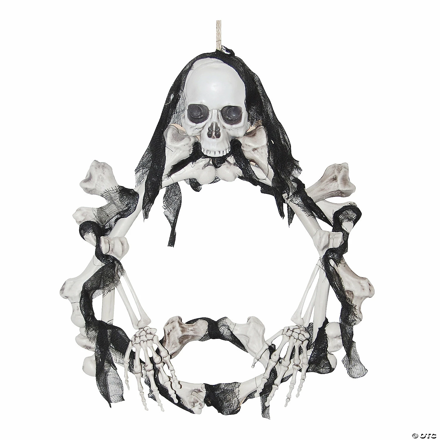 Light-Up Bone Wreath Your victims will know you ft.re in the spirit of the season when they see this all-bone wreath on your door at your Halloween party. Light-up skull eyes give a very creepy staring look. Chilling! This measures approximately 14.6″x 16.5″x 2.8in. Uses 2 AA batteries, not included.Special Shipping Information: This item ships separately from other items in your order. This item cannot ship to a P.O. Box. This item may be subject to additional processing days.ITEM IS NOT ELIGIBLE FOR EXPEDITED SHIPPING