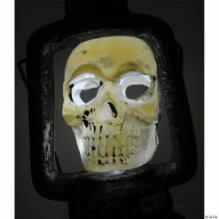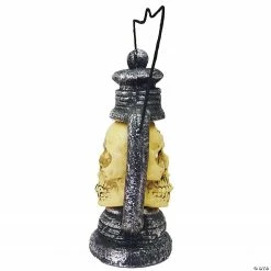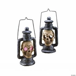 Bring your Halloween decorating ideas to life with the perfect Halloween prop for your haunted house or Halloween party! Easy to set up, this Light-Up Skull Lantern will provide your Halloween home décor with the frights you crave. This creepy skull accent has light-up eyes and change color from red to green to blue right before your eyes. Plastic. Requires 2 AA batteries, not included.