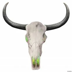 24 ” Lightup Longhorn Cow Skull Creepy Halloween Home Decor! From a taxidermy shop to a haunted mansion, no matter what you are turning your house into, this light up animal skull prop is the perfect touch to make your Halloween decor extra spooky. The longhorn skull is made from molded plastic and glows with green light, as if the skull is haunted. The included LED light is hidden inside the skull and requires 3 AAA batteries. Measures 24″ from the top of the horns to bottom of the skull. Batteries not included.Special Shipping Information: This item ships separately from other items in your order. This item cannot ship to a P.O. Box. This item may be subject to additional processing days.ITEM IS NOT ELIGIBLE FOR EXPEDITED SHIPPING