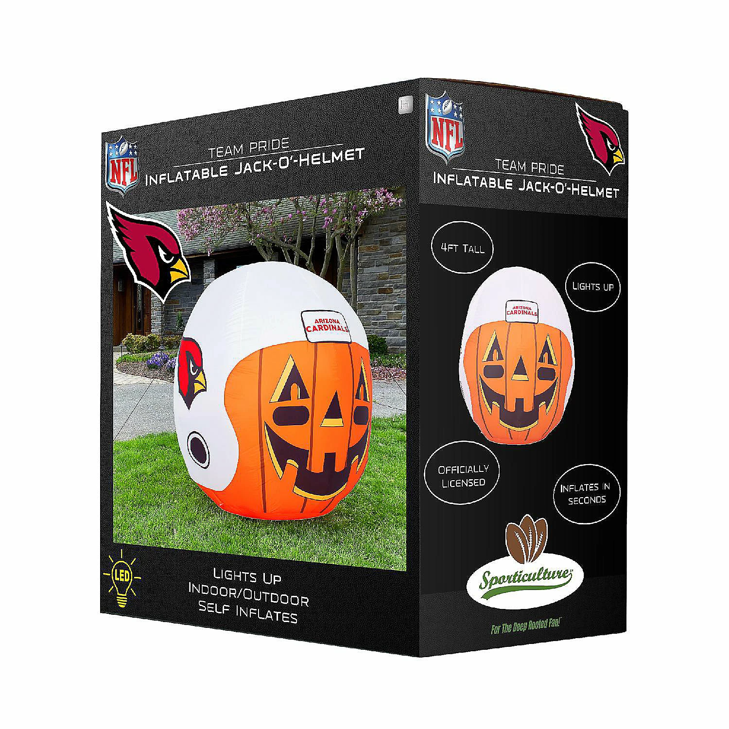 Get ready for fall, football and inflatable fun with the Team Pride Inflatable Jack-O’-Helmet! This four foot officially licensed pumpkin with jack-o’-lantern face and logo graphic helmet inflates in seconds, illuminates with internal LED lights, and deflates for easy storage. Made of durable weatherproof material, it’s the perfect addition to a front yard Teamscape and Halloween décor. Complete with tie down ropes and stakes, you are sure to be the envy of the neighborhood all season long! Makes the perfect gift For The Deep Rooted Fan!