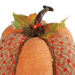 The perfect tabletop or mantlepiece to add a warm touch to your holiday decor. This tall pumpkin is free standing and has a textured finish. Perfect for kitchen and dining areas. Features: Orange table top pumpkin with stem Tall pumpkin has a textured finish Perfect for Halloween Thanksgiving and Autumn decor Recommended for indoor use or covered outdoor use Dimensions: 10.5″H x 7.75″W x 7.75″D Material(s): fabric/jute