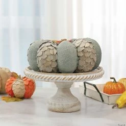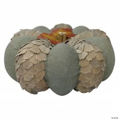 This beautiful pumpkin would be the perfect addition to your fall decor. Use as a centerpiece or as an accent piece for your home. Features: Tabletop pumpkin Yellow and orange leaf Striped pattern Perfect to place on any tabletop in your home Recommended for indoor use only Dimensions: 5.5″ high x 10″ in diameter Material(s): wood