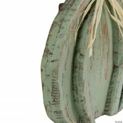 Not your average pumpkin this unique pumpkin is free standing and will add a pop of color to your home or office. The perfect table top or mantle piece to add a touch of nature to your holiday decor. Perfect for living rooms kitchens desks or window displays. Features: Pumpkin table top decoration Green in color with a rustic finish Accented with a stem and straw bow Perfect for Halloween Thanksgiving and fall decor Recommended for indoor use or covered outdoor use Dimensions: 12″H x 10.75″W x 2″D Material(s): wood