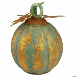 If you are looking for a perfect complement to your autumn decor this pumpkin is a great idea! With tones of green and orange it adds a unique touch to your autumn harvest and Thanksgiving decorations. This decor is just perfect for placing on fireplace mantles windowsills adding to table centerpieces or your autumn decorations. Features: Metal orange and green pumpkin tabletop decor Perfect for Thankgsiving decorations Swirled textural paint of green and orange tones 3 burnt orange pumpkin leaves with a curled green stem top it off Recommended for indoor use only Dimensions:13″H x 9″W x 9″D Material(s):metal/paint