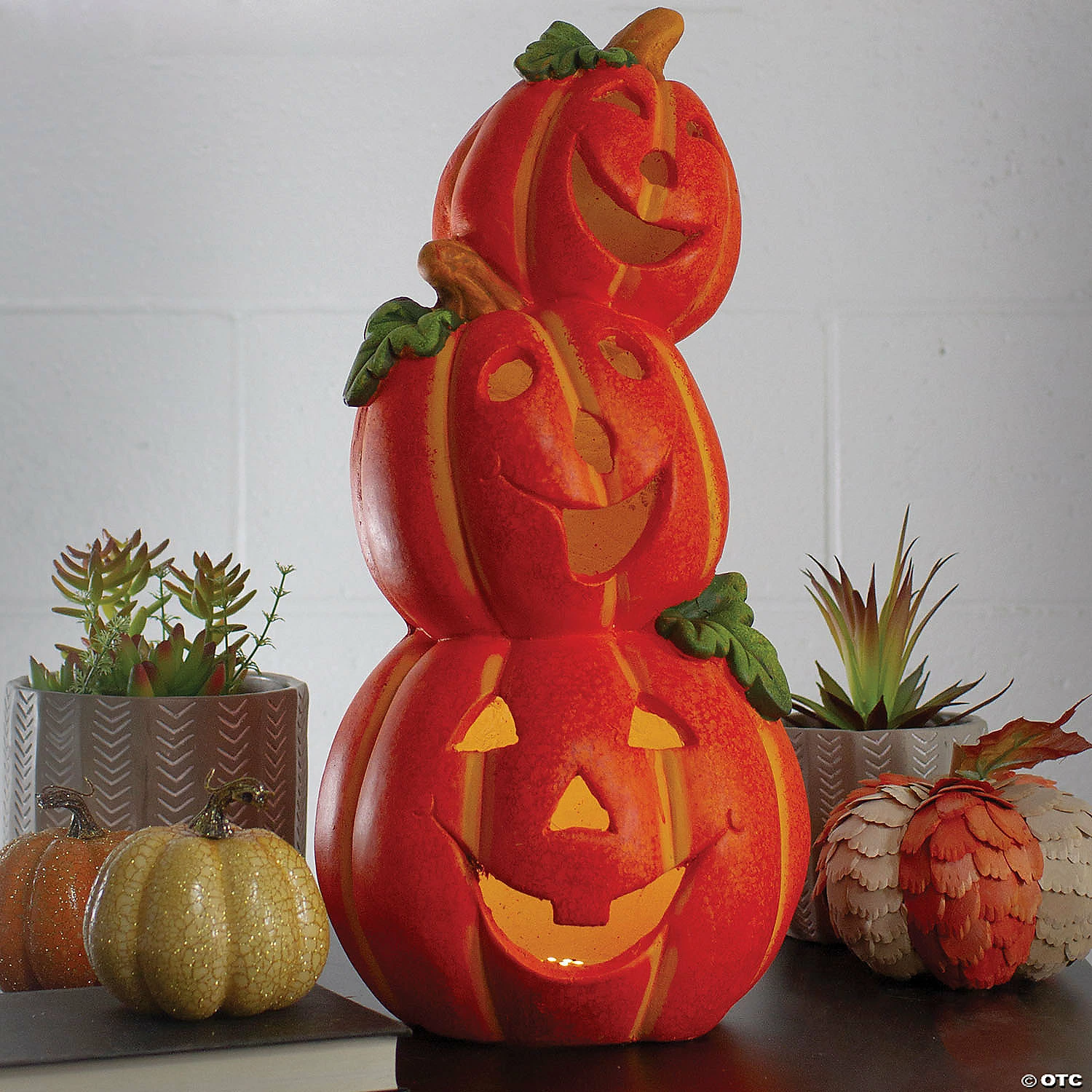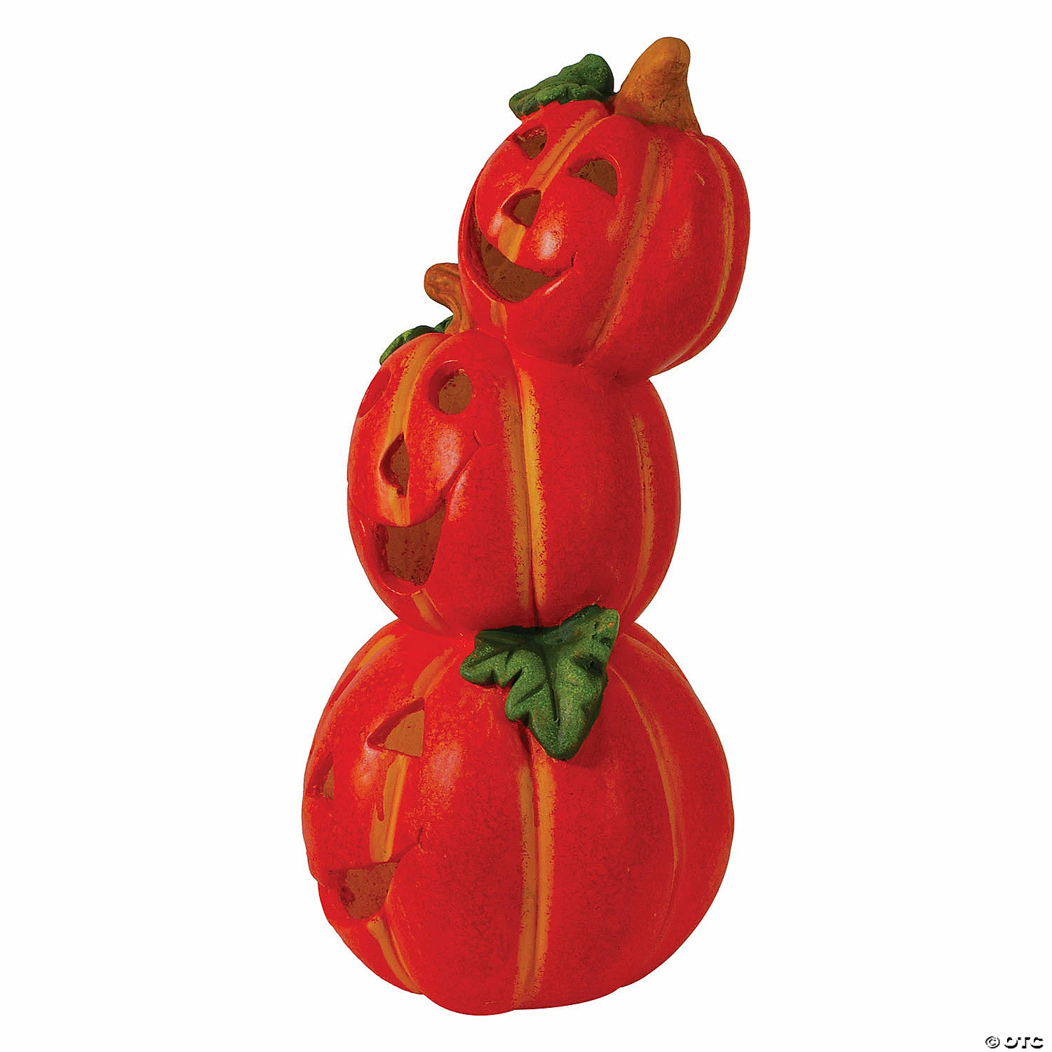 Creating a unique Halloween decor is one of the best parts of autumn. Give your decorations a touch of fun and play with this Lighted jack-o’-lantern stack. Made with a light strip that replicates candlelight this piece is sure to be a conversation starter. Product Features: Trio jack-o’-lantern stack Pre-lit with 5 warm white micro LED lights Three smiling jack-o’-lanterns each with a brown stem and green leaf accent Required 3 “AA” batteries – NOT included Recommended for indoor use only Dimensions: 18″ high by 8″ diameter Material(s): ceramic
