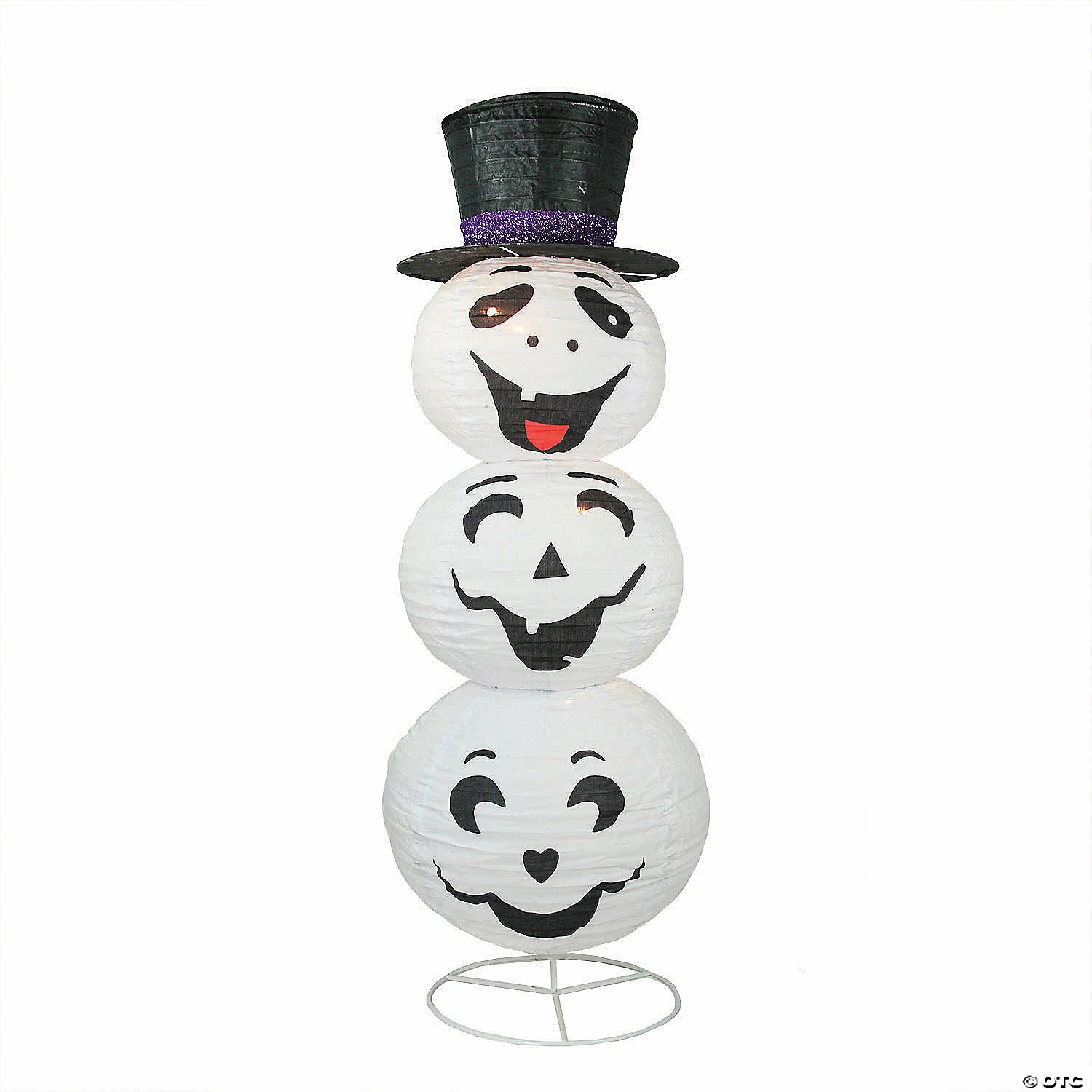 Halloween will be here in no time! This festive stack of ghosts with friendly faces is topped with a top hat making it a great addition to any Halloween decor. Grab them and have some spooky fun!. Product Features: Color: warm white bulbs / white wire. Number of bulbs on string: 4. Bulb size: C7. Spacing between each bulb: 9″. 38″ lead cord (spacing from the plug to the ghosts). Additional product features: 3-dimensional decor. Some quick and easy assembly required. Collapsible construction for easy storage. Comes with lawn stakes and clear zip cords. Comes with replacement fuse. UL certified and approved for indoor or outdoor use. 120 volts 60 hertz 0.24 amps 28 watts. Dimensions: 44″ high x 16″ diameter. Material(s): metal/fabric/glass bulbs Special Shipping Information: This item ships separately from other items in your order. This item cannot ship to a P.O. Box. This item may be subject to additional processing days. ITEM IS NOT ELIGIBLE FOR EXPEDITED SHIPPING