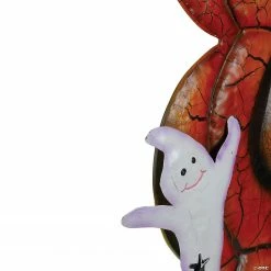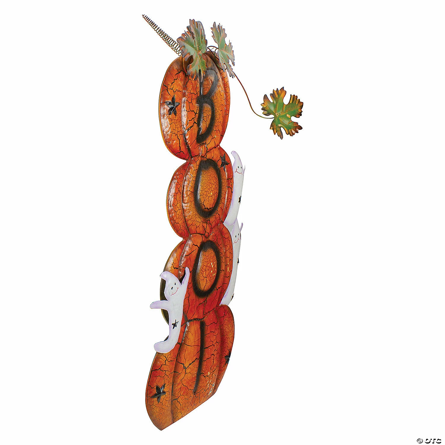 If you want a perfect addition to your yard decor this Halloween this decoration is for you! The crackled paint on the pumpkins gives it an aged feel and is perfect for your spooky lawns or just to greet your guests! Cute little ghosts are happy and welcoming on the sides of the pumpkins. Add this to your Halloween decor and festivities this fall season! Features: 4 stacked pumpkin metal yard art Crackled orange paint on the pumpkins 3 smiling ghosts adorn the sides of the pumpkins Autumn leaves are on the top of the pumpkins BOO written in black vertically on the top 3 pumpkins 2 stakes for stability Dimensions: 33″H x 13.5″W x 3″D Material(s): metal