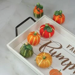 This decoration set would be the perfect addition to your fall and Thanksgiving decor. Perfect to place in a basket or separately all-around your home. Product Features: Set comes with 6 different colored pumpkins. Recommended for indoor use only. Dimensions: Cinderella gourd: 1.75″ high by 2.5″ diameter, Sugar pie gourd: 2.75″ high x 2.75′ diamater, Italian stripe(green): 3.25″ high by 2.25″ diameter, Italian stripe(orange): 3″ high by 2″ diameter, Acorn gourd: 3″ high by 2″ diameter, Bicolor gourd: 3.5″ high x 1.75″ diameter. Material(s): ceramicSpecial Shipping Information: This item ships separately from other items in your order. This item cannot ship to a P.O. Box. This item may be subject to additional processing days.ITEM IS NOT ELIGIBLE FOR EXPEDITED SHIPPING