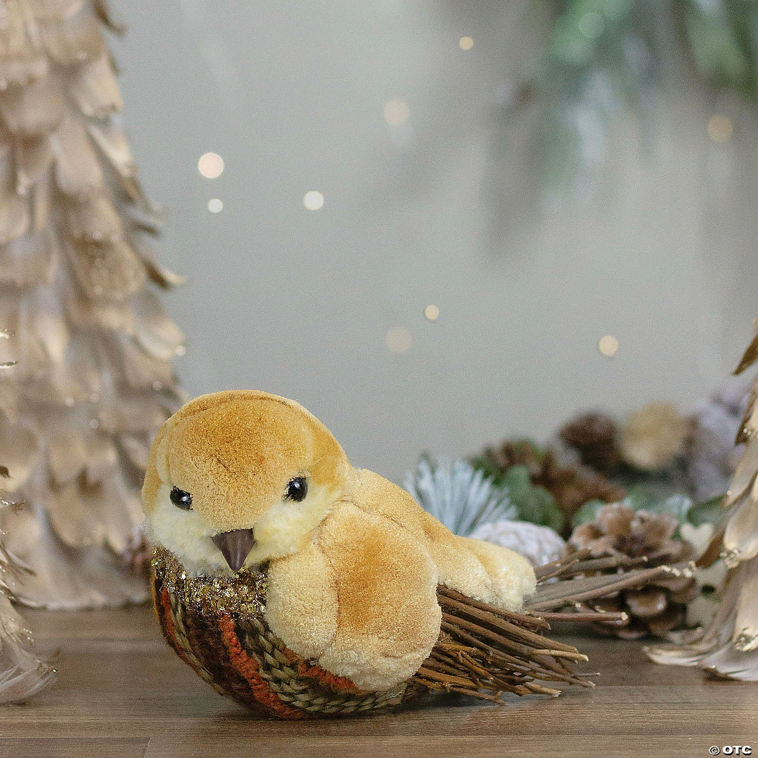 The perfect table top or mantle accent piece to add a warm touch to your holiday decor. This chubby Thanksgiving bird is free standing and is embellished with sequins to add a touch of sparkle. The earth tone colors will add a country rustic feel to your mantles and table tops. Features: Left and down facing autumn bird Accented with gold and amber sequins Features shades of orange and brown hues Designed with a faux fur body and striped yarn on the belly Has a long tail made of wooden sticks Recommended for indoor use Dimensions: 4″H x 4.25″W x 8.5″D Material(s): faux fur/wood/sequin/glitter/paper