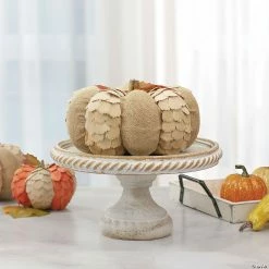This beautiful pumpkin would be the perfect addition to your fall decor. Use as a centerpiece or as an accent piece for your home. Features: Tabletop pumpkin Yellow and orange leaf Striped pattern Perfect to place on any tabletop in your home Recommended for indoor use only Dimensions: 5″ high x 9″ in diameter Material(s): wood