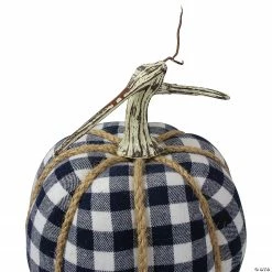 This adorable pumpkin would be the perfect addition to your fall and Thanksgiving decor this year! The plaid design is great to add to your holiday displays. It is also perfect to use as a centerpiece or as an accent piece.Product Features: Artificial fabric tabletop pumpkin. Has a blue and white plaid pattern. Twine rope accents. Ivory and brown stem. Perfect to place on any tabletop in your home. Recommended for indoor use only. Dimensions: 7.75″H x 6.5″W x 6.5 “D. Material(s): synthetic fabricSpecial Shipping Information: This item ships separately from other items in your order. This item cannot ship to a P.O. Box. This item may be subject to additional processing days.ITEM IS NOT ELIGIBLE FOR EXPEDITED SHIPPING