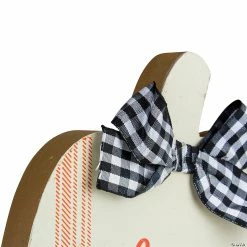 Add a rustic touch to your Autumn decorations with this country pumpkin table plaque set. Wood pumpkins are adorned with black and white checked ribbon and plaid accents. An ideal set for that farmhouse chic decor. Product Features: Standing Fall harvest pumpkin decorations. Embellished with painted plaid accents. Black and white checked ribbon. Recommended for indoor use. Items do not hang. dimensions: 8″H x 6.5″W x 1″D. Material(s):MDF(medium density fiberboard)/fabric Special Shipping Information: This item ships separately from other items in your order. This item cannot ship to a P.O. Box. This item may be subject to additional processing days. Item is not eligible for expedited shipping. You may initiate a return for unused items within 30 days, if the items are in original packaging with all original materials included with the shipment.