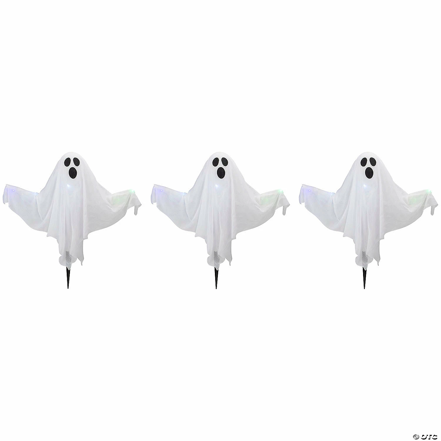 Create a “spooktacular” display this Halloween with this color-changing ghostly lawn stake set. These ghosts are sure to be a hit to everyone who sees them glow. These lawns takes are a perfect addition to any haunted house or as part of your home Halloween decorations! Product Features: Lighted white ghost lawn stakes. Accented with black circle eyes and mouths. Each ghost head has color changing LED lights. Includes stakes for easy installment. Requires 3 ‘AA’ batteries – not included. On/Off switch on battery pack. Dimensions: 20″H x 72″W x 3″D. Material(s): fabric/plastic/foam Special Shipping Information: This item ships separately from other items in your order. This item cannot ship to a P.O. Box. This item may be subject to additional processing days. Item is not eligible for expedited shipping. You may initiate a return for unused items within 30 days, if the items are in original packaging with all original materials included with the shipment.