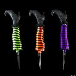 It’s the spookiest time of the year. Make sure your Halloween decorations are the talk of the neighborhood this year. These witch leg pathway markers are perfect for leading trick-or-treaters to your front door. Product Features: Purple green and orange striped witch leg pathway marker. Color: clear bulbs/black wire. Total number of bulbs: 3. Bulb size: mini. 8 hour timer function. Requires 3 ‘AA’ batteries – not included. Comes with (3) black ground stakes. Recommended for indoor and outdoor use. Dimensions: Material(s): plastic/glass bulbs/wire Special Shipping Information: This item ships separately from other items in your order. This item cannot ship to a P.O. Box. This item may be subject to additional processing days. Item is not eligible for expedited shipping. You may initiate a return for unused items within 30 days, if the items are in original packaging with all original materials included with the shipment.
