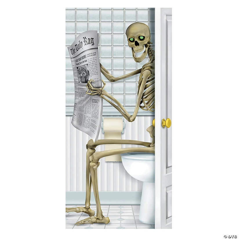 Skeleton Restroom Door Cover. These old bones still have a bit of life in them. Includes: Each door cover is printed one side on 2.25 mil plastic and measures 30″ x 5 feet. Indoor and outdoor use.Special Shipping Information: This item ships separately from other items in your order. This item cannot ship to a P.O. Box. This item may be subject to additional processing days.ITEM IS NOT ELIGIBLE FOR EXPEDITED SHIPPING