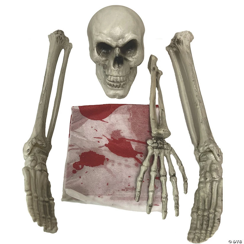 Looking for the perfect Halloween prop? This Skeleton Death Bed is a great concept for a haunted house scene or outdoor Halloween display. Features a head, hands, feet, and blood spattered sheet. Sheet, 50″ x 38″. Special Shipping Information: This item ships separately from other items in your order.