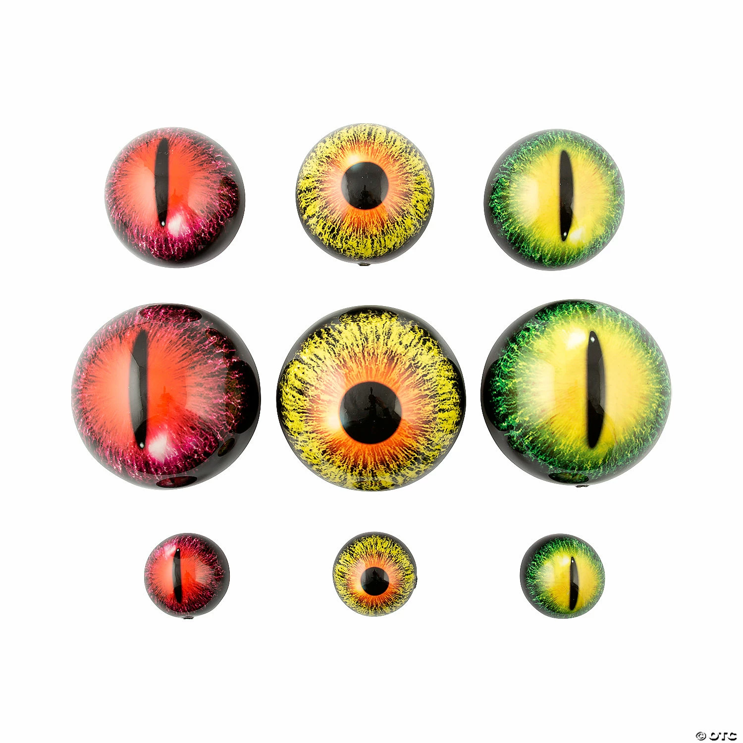 When one snake eye just won’t do, choose this set of nine! Coming in varying sizes, each orb is a great choice for fairly creepy Halloween decorations. Mount each orb on a stick or pile them together for an unusual Halloween decoration. Your guests won’t be able to shake the idea that someone – or something – is watching them! Foam. (9 pcs. per set) Includes three 3 1/2″ diam. orbs, three 2 1/2″ diam. orbs and three 2″ diam. orbs.