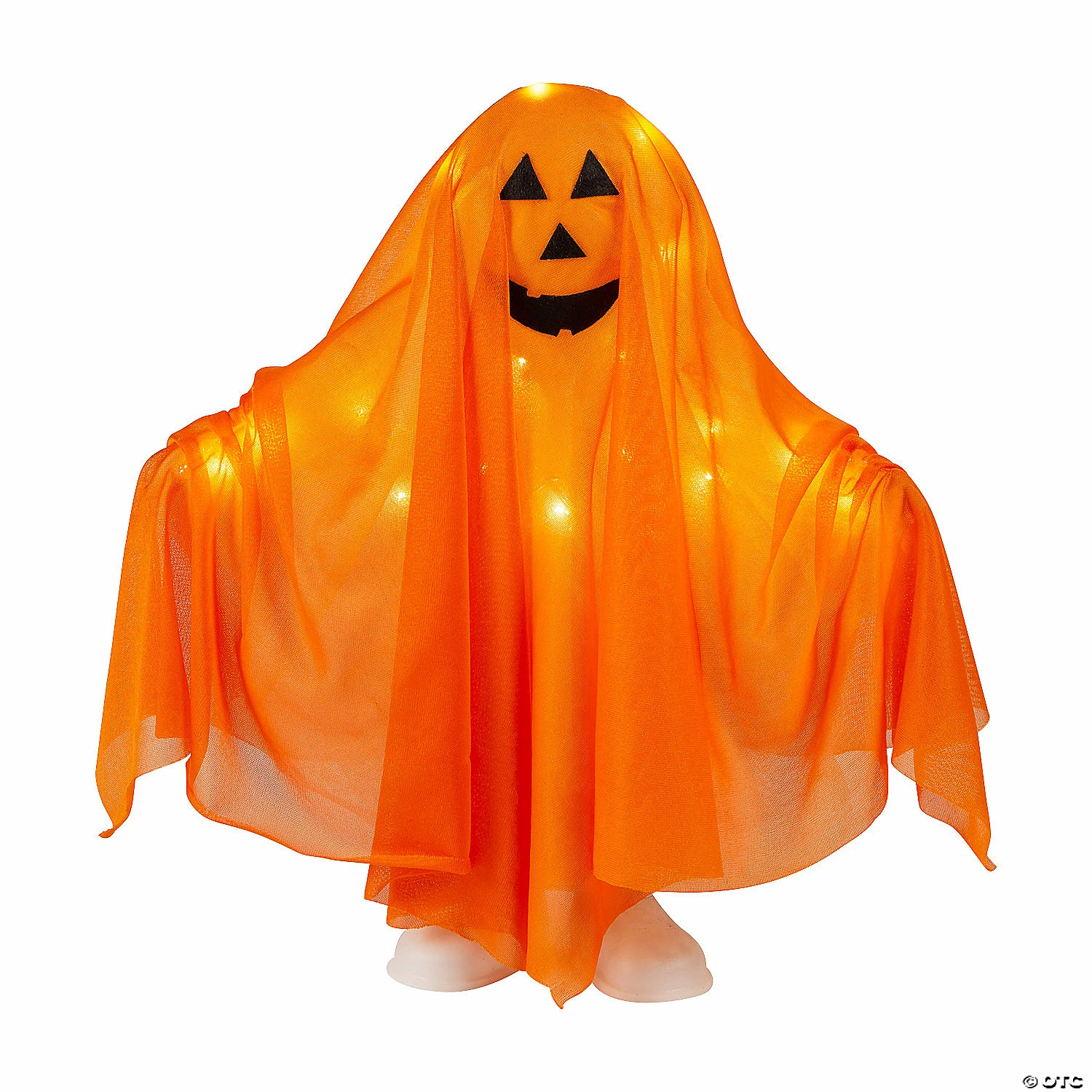 Just when you thought Halloween couldn’t get any cuter, along comes this adorable pumpkin ghost! Featuring a jack-o-lantern smile and fun lights, this stand-up Halloween decoration looks like he’s going in for a Halloween hug. Add this cute little ghost to Halloween party decorations or put it in the window for trick-or-treaters to see. Polyester. 15″ Featuries on/off switch. Requires 3 “AA” batteries, not included.