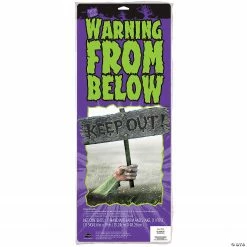 Give your guests the creeps with thid warning from the dead! An arm appears to be reaching up from the grave with a warning sign to all passersby! Includes the arm, sign with pole, and ground stake. Add a few tombstones and you have a spooky outdoor graveyard scene. Sign says Keep Out! Signs measure 18 inches tall x 19 inches wide x 3 inches deep.